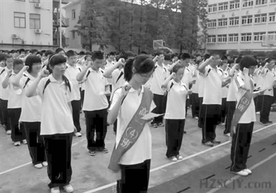 图为杭十中全体师生在操场上举行2010学年新学期开学典礼。
