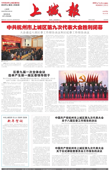 本报讯(全其力) 2011年12月30日,中国共产党杭州市上城区第九届委员会第一次全体会议举行。