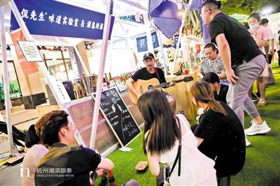 “湖滨路靠近庆春路区域原先存在着业态不足、人流比南边较为冷清等问题。经过业态规划部门的规划与反复论证,我们决定在湖滨路设置夜间经济消费街区,实现经济发展与西湖景观相得益彰。”区投资控股集团负责人陈凌军介绍,今年以来,湖滨步行街围绕繁荣夜间经济,精心打造了包括“湖上市集”“湖上直播间”“湖上睡前练会琴”“湖上in巷”等在内的“湖上”系列IP,形成了地标性的夜间经济生活集聚区。